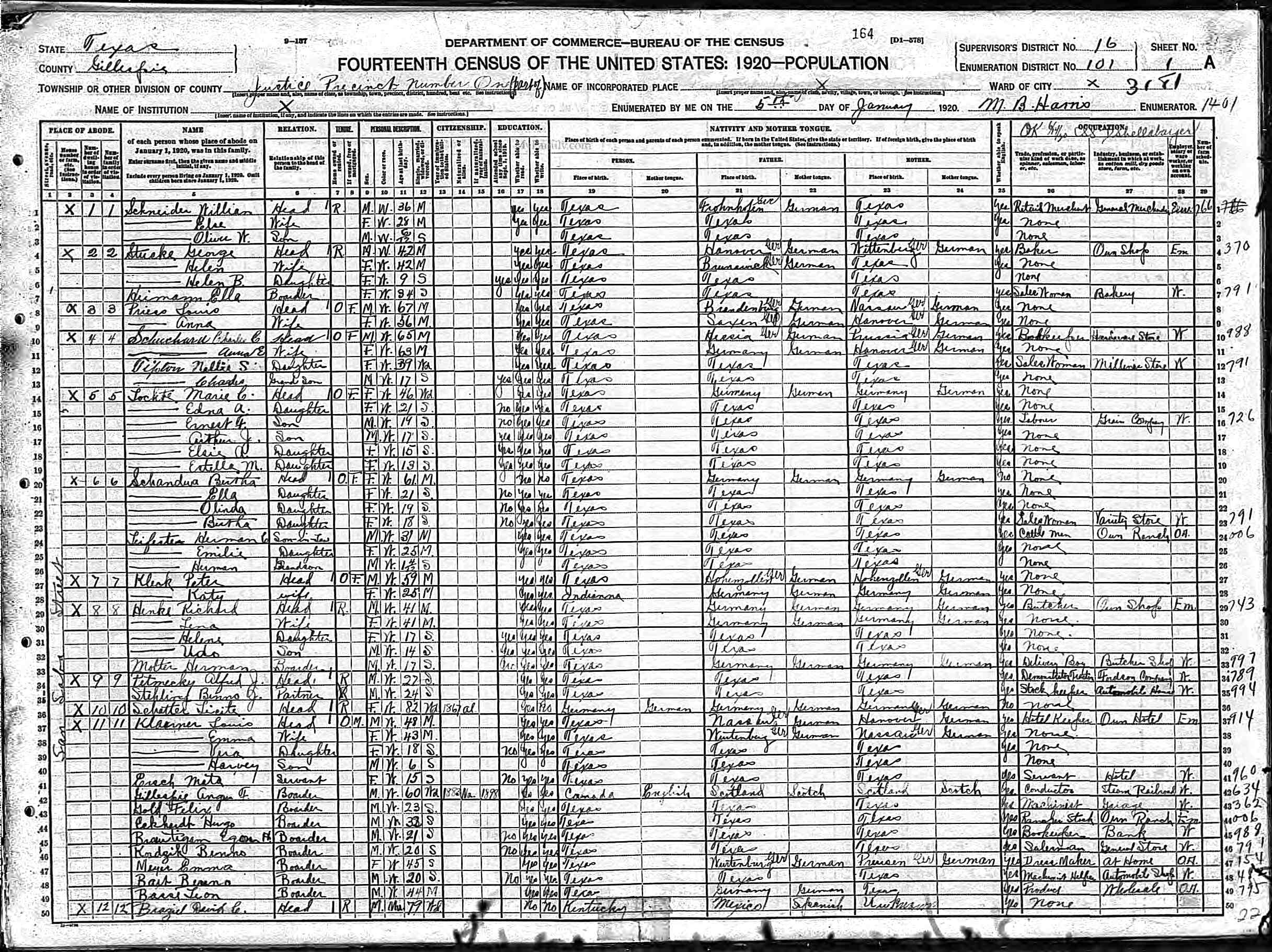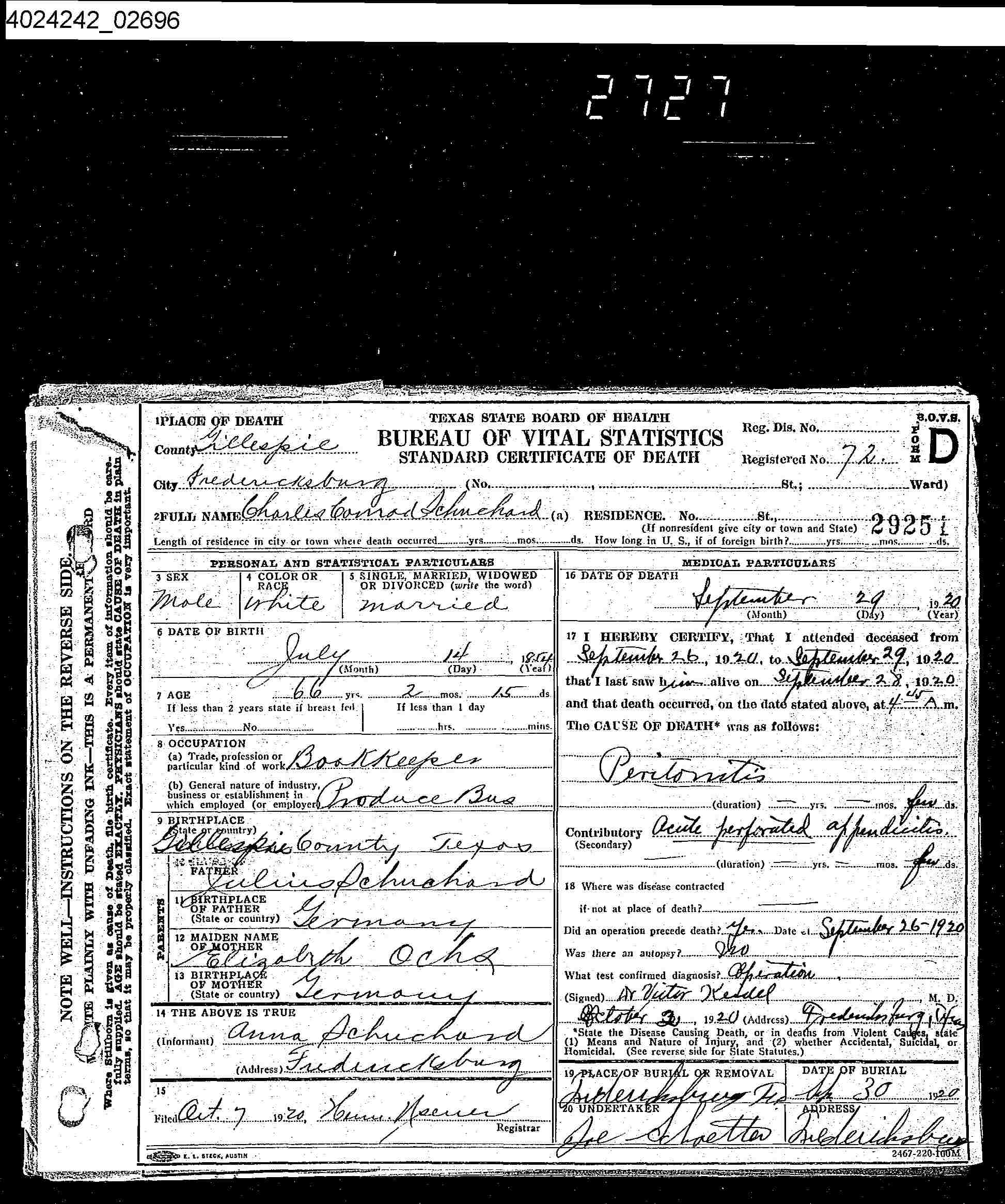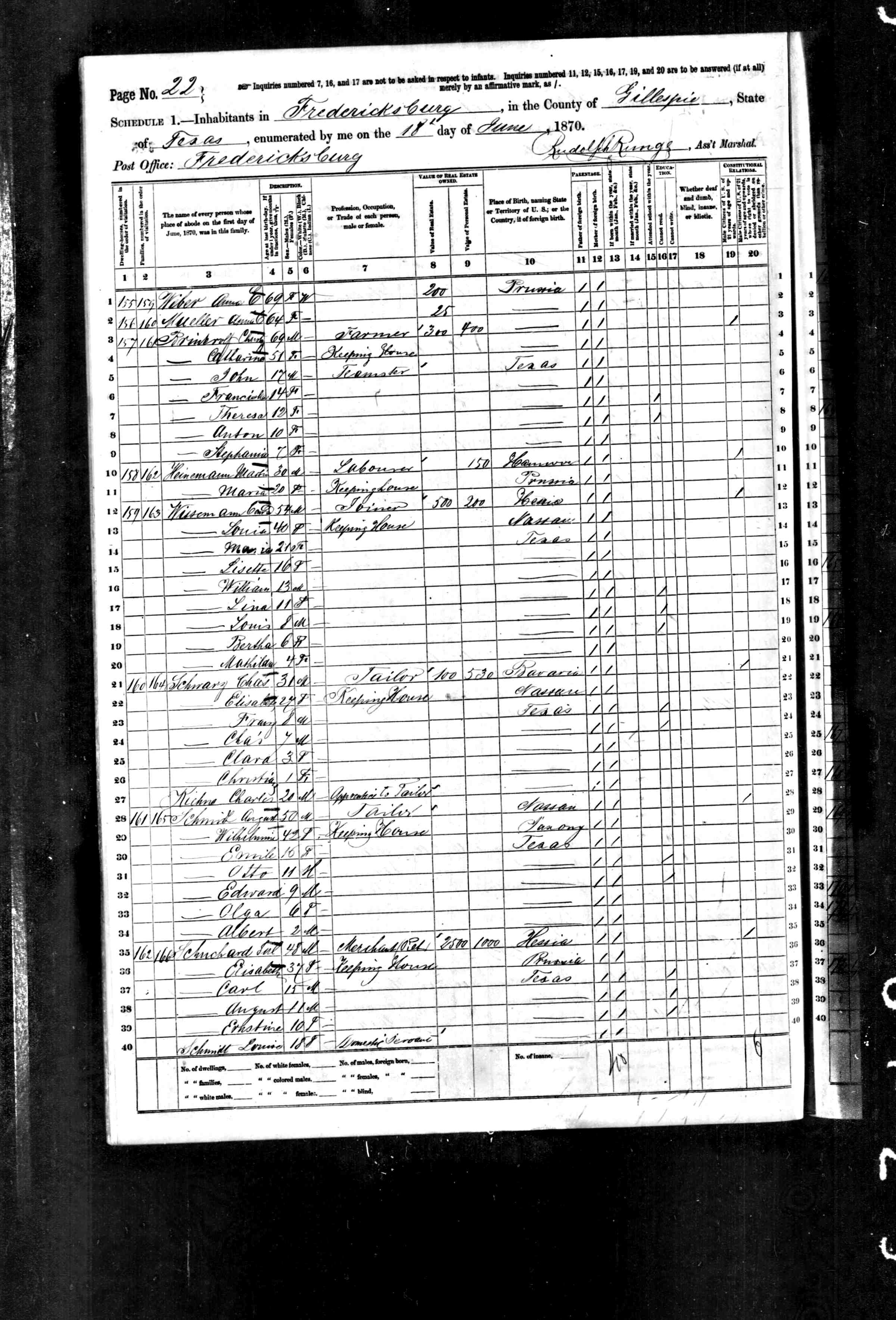 Died September 29, 1920 in Fredericksburg, Gillespie County, Texas