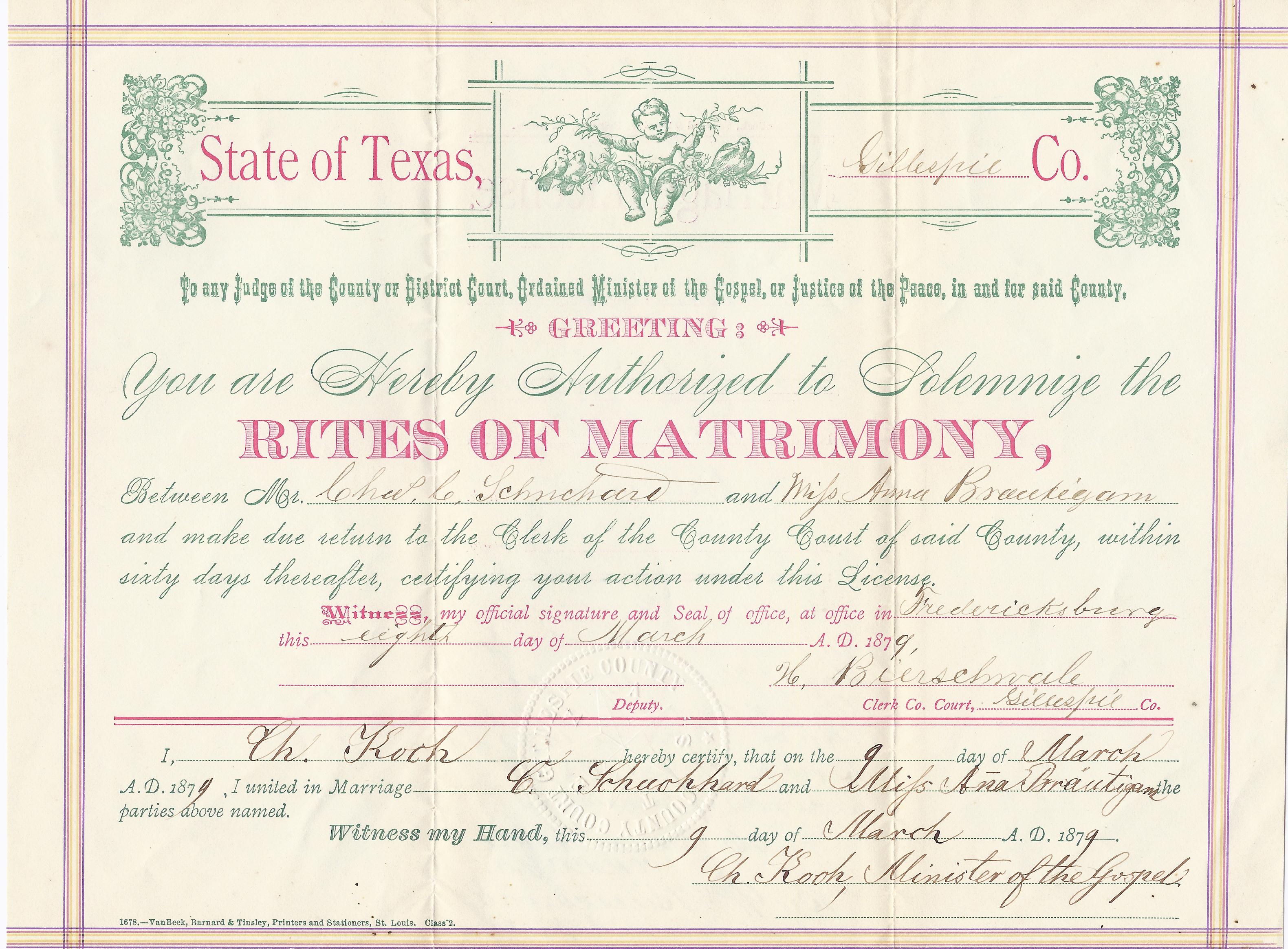 Charles and Anna Schuchard marriage license 8 Mar 1879
