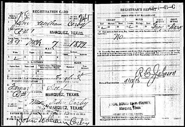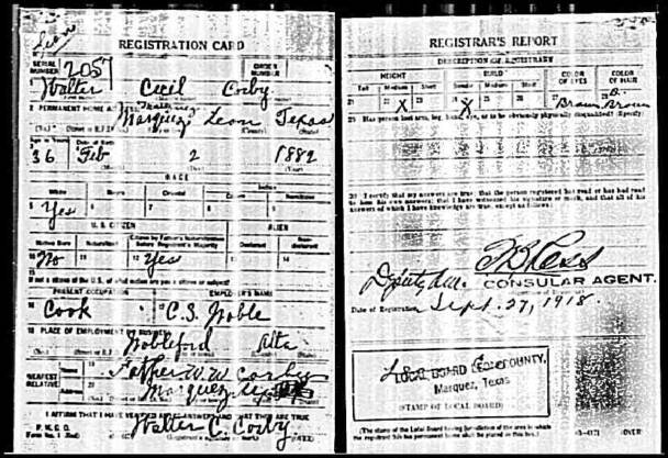 WWI draft registration card