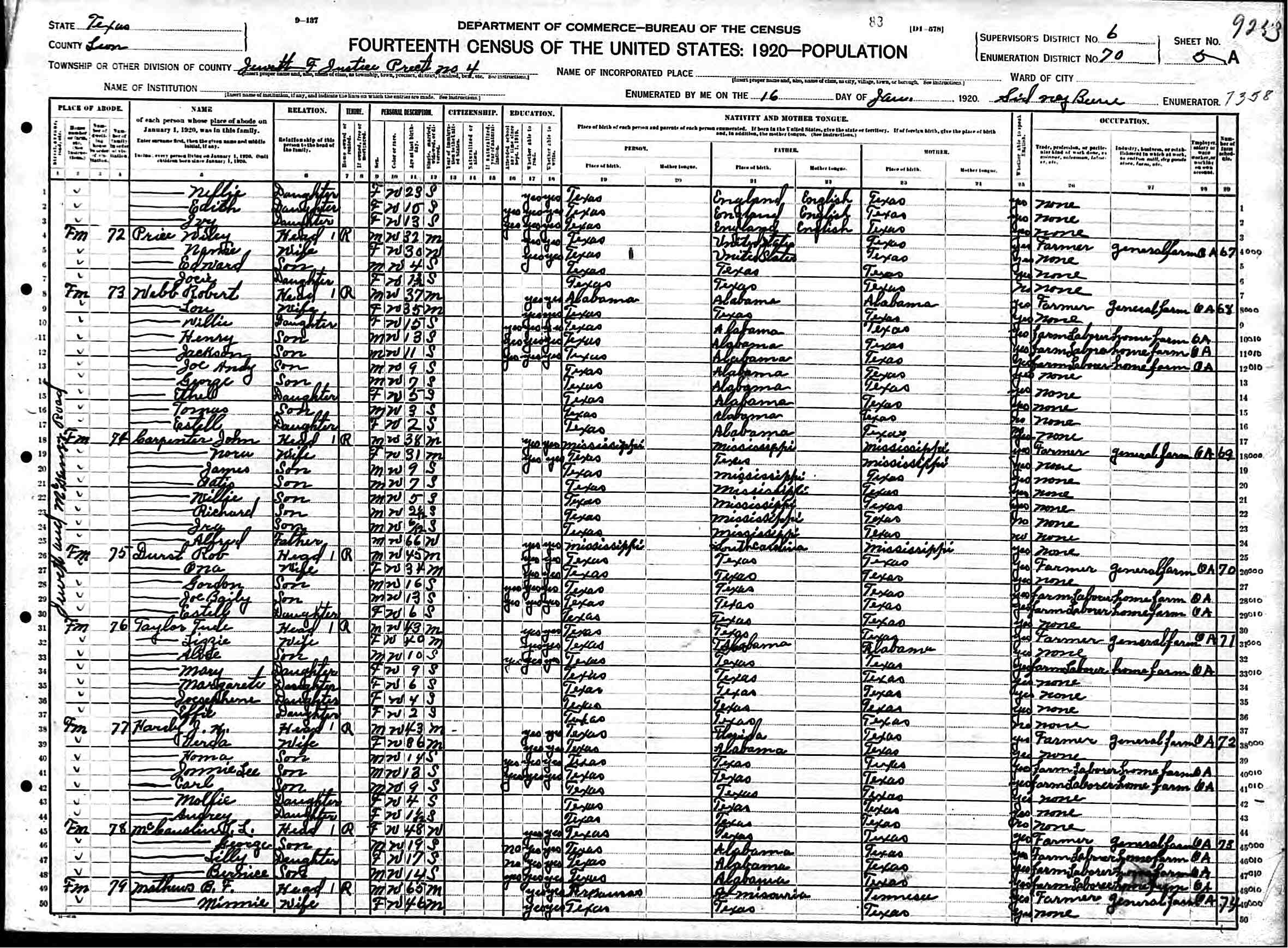 1920 Census pg 1