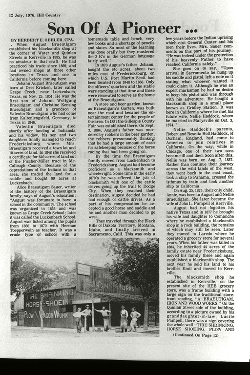 Born November 25, 1851 in Grape Creek, Gillespie County, Texas