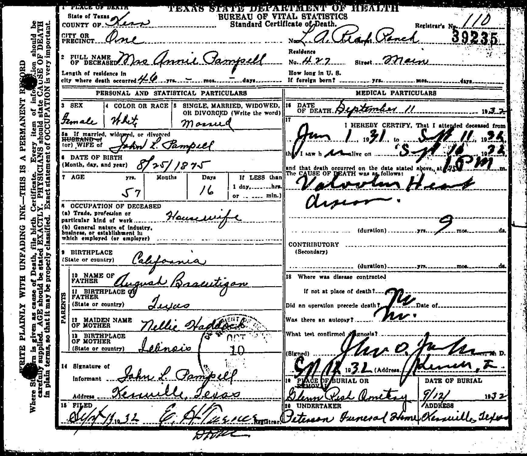 Annie Braeutigam August 25, 1875 - September 11, 1932.