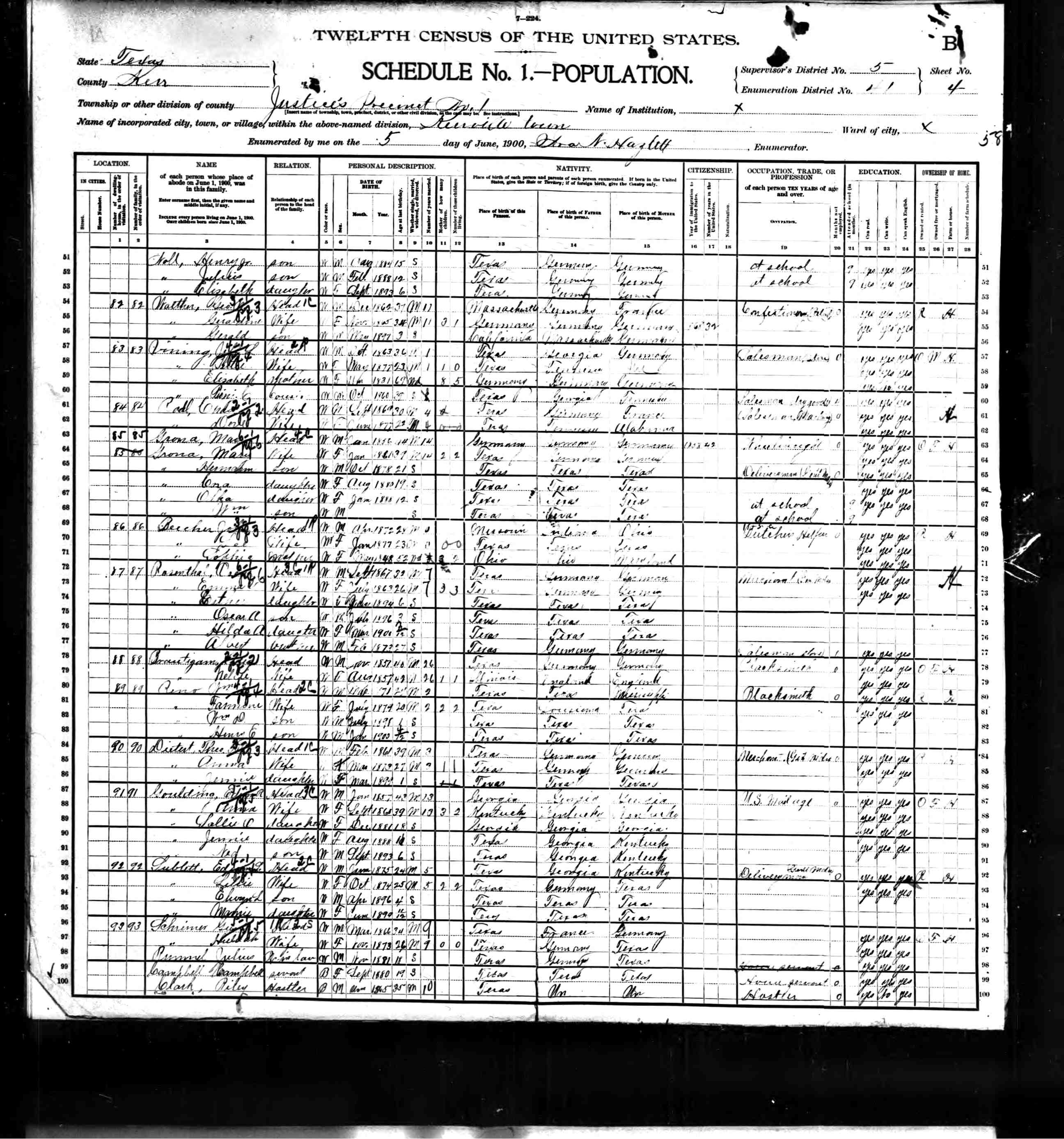 Died August 16, 1916 in Kerrville, Kerr County, Texas